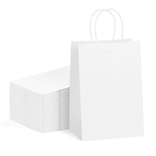 Amazon Com 50 Pack Sturdy Small White Gift Paper Bags With Handles Bulk Bagmad Kraft Bags 5 25x3 25x8 Inch Craft Grocery Shopping Retail Party Favors Wedding Bags Sacks White 50pcs Everything Else
